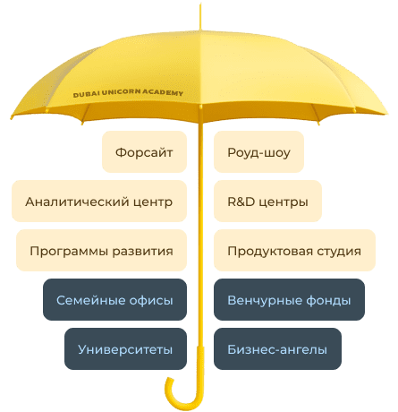 Мы объединяем аналитические центры, передовые университеты, семейные офисы, венчурные фонды, сообщества бизнес-ангелов и продуктовые студии.