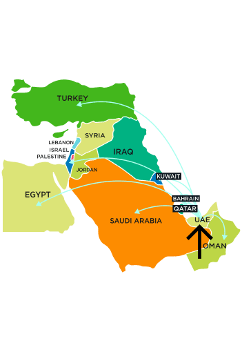 В MENA стекаются идеи, товары, бизнесы и капитал со всего мира. Присутствие бизнеса в MENA может сделать бизнес успешным на мировой арене.